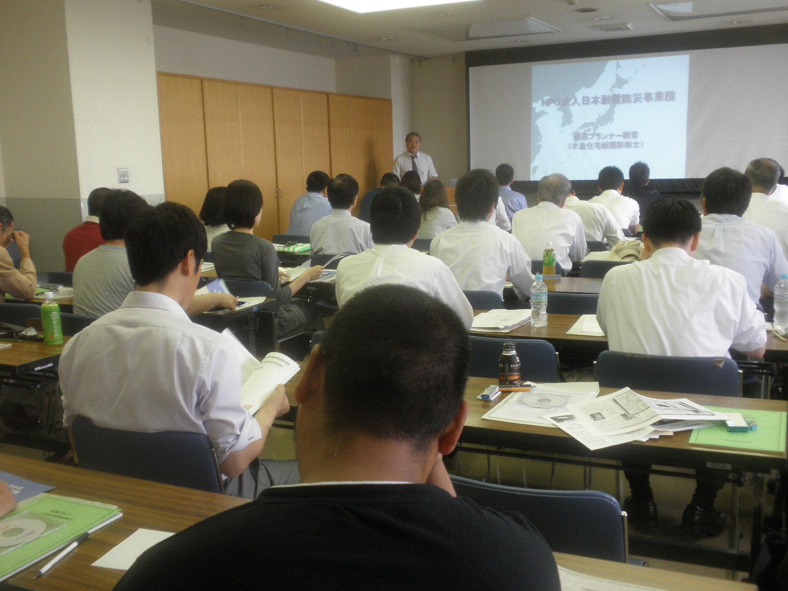 耐震プランナー制度を創設し、耐震診断と耐震補強の出来る実務者の育成を行っております。 現在、2ヶ月に1度開催している耐震プランナー講習会ですが、 申込者が多数の為、6月15日(水)臨時に講習会を開催いたしました。 大勢の参加者が熱心に講習を受け、試験に臨みました。