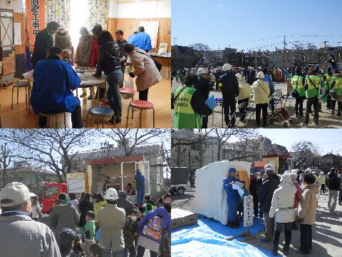 2月24日(日) 午前10時〓正午 <内容> 避難所開設運営訓練:仮設トイレ・間仕切り組立など 防災体験:起震車で震度体験、煙体験、初期消火訓練など 地震災害コーナー:耐震補強などの情報・相談 炊出し訓練:トン汁、炊飯袋によるご飯 ※当事業団では阪神・淡路大震災の教訓や 耐震診断・耐震補強の情報提供、相談を行いました