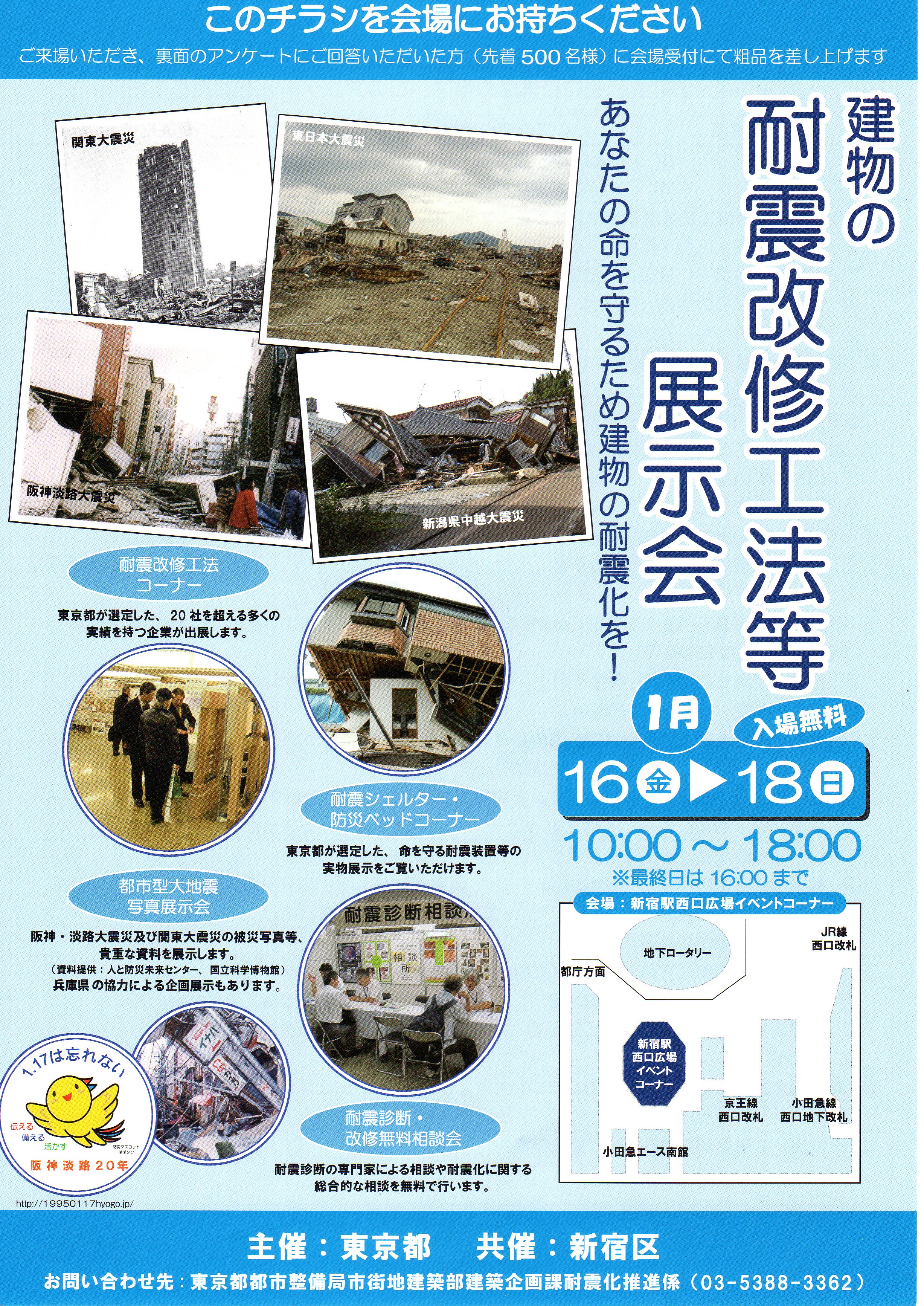 耐震改修の無料相談会及び阪神淡路・関東大震災の被災写真等貴重な資料の展示などもございます。