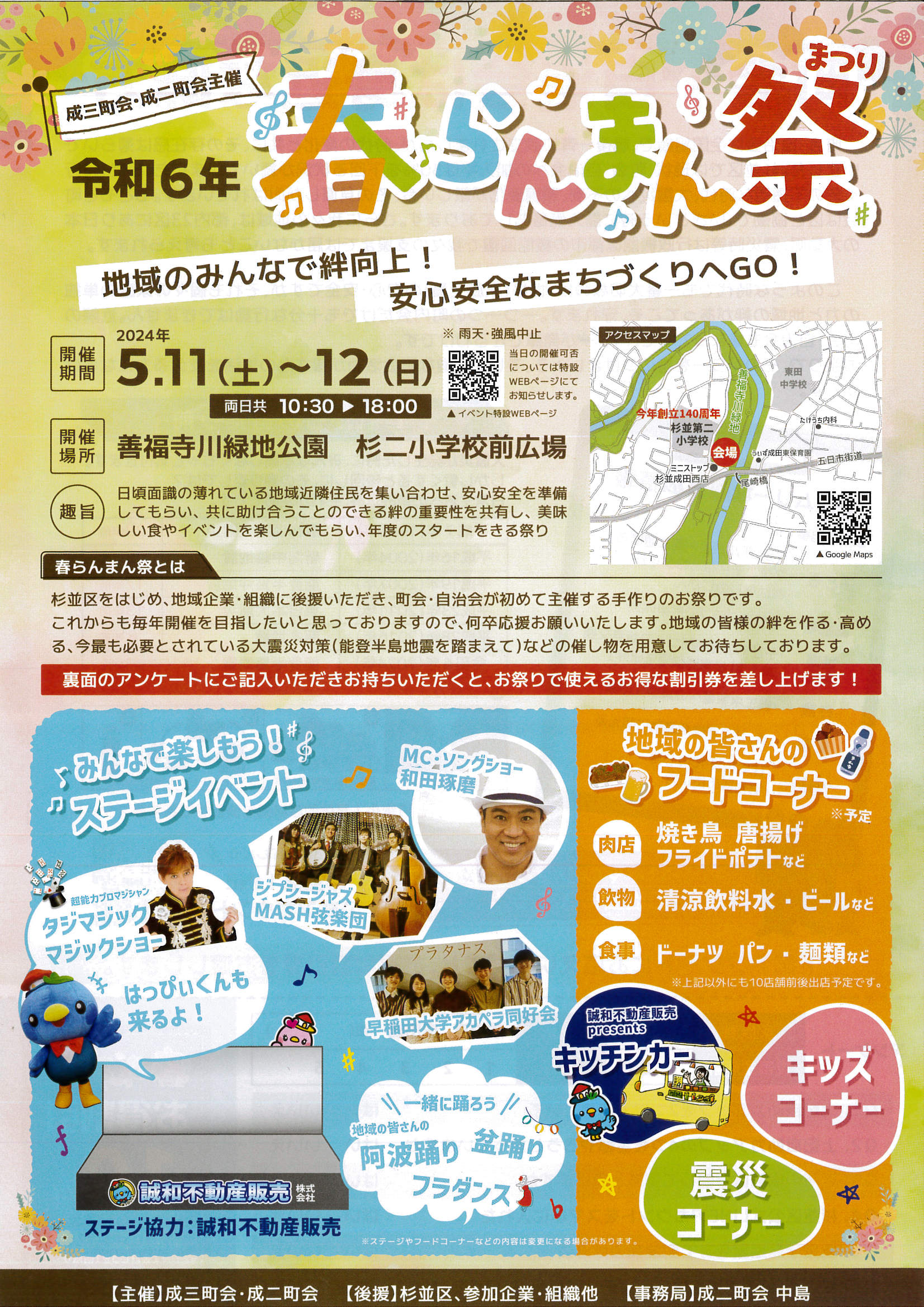 杉並区成三町会・成二町会主催 「 春らんまん祭」令和6年5月11日(土)〓5月12日(日) に参加します!
